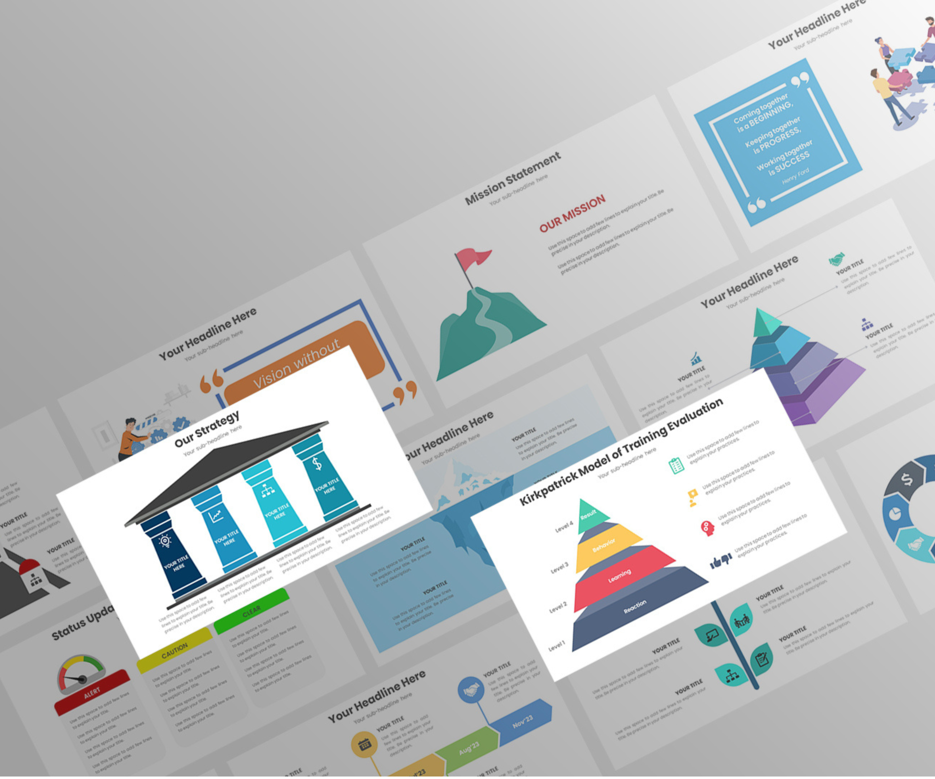 - Create an impact on your stakeholders, management and all types of audience with professional-looking materials